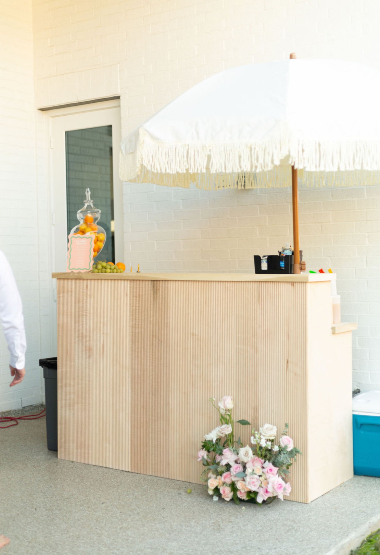 Elevate your event with our Natural Wood Fluted Bar — the perfect blend of modern design and organic texture. Crafted with warm, natural wood and sleek fluted paneling, this statement bar adds a sophisticated touch to weddings, brand activations, dinner parties, and private celebrations. Its neutral tone complements any color palette or theme, from boho to contemporary chic.